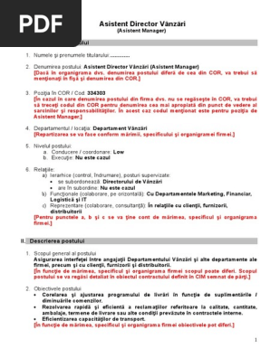 Fișa Postului și Fișă De Evaluare A Performanțelor Individuale Pentru Asistent Comercial Cod Cor 243219