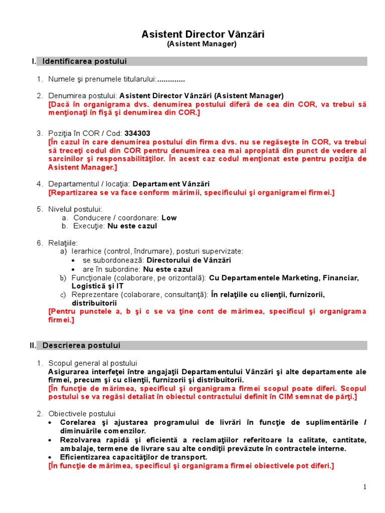 Fisa Pos Asistent Director Vanzari