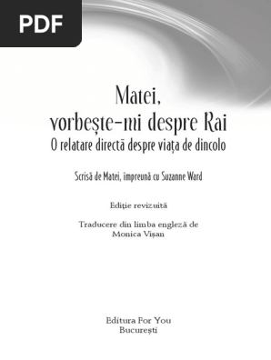 Matei Vorbeste Mi Despre Rai O Relatare Directă Despre Viaţa De Dincolo Scrisă De Matei Impreună Cu Suzanne Ward Ediție Revizuită Traducere Din Lim Pdf Free Download