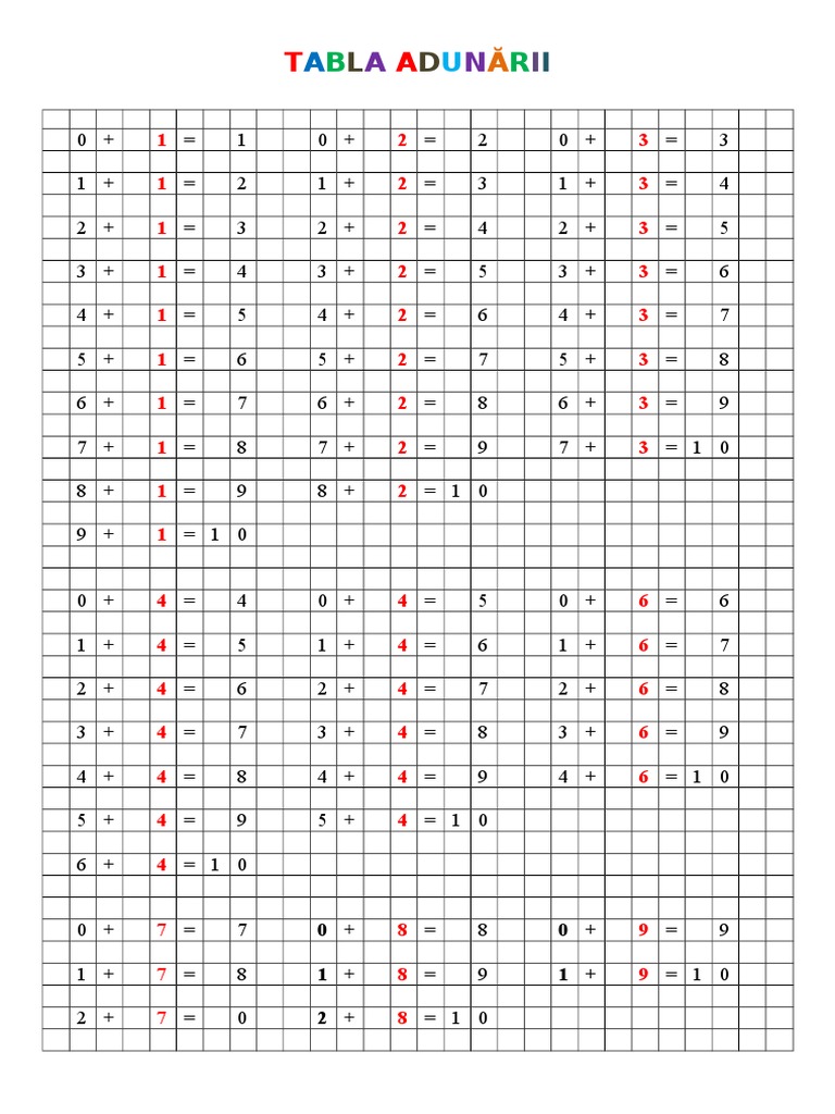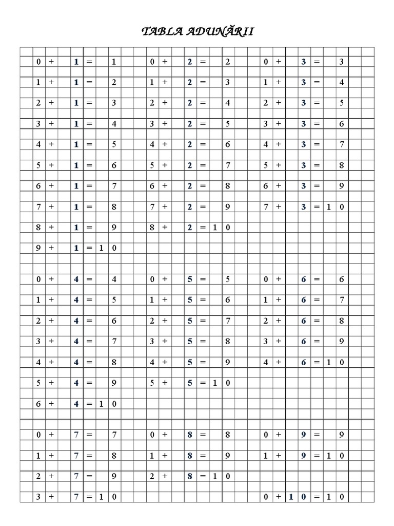Tabla Adunarii Si Scaderii De Printat