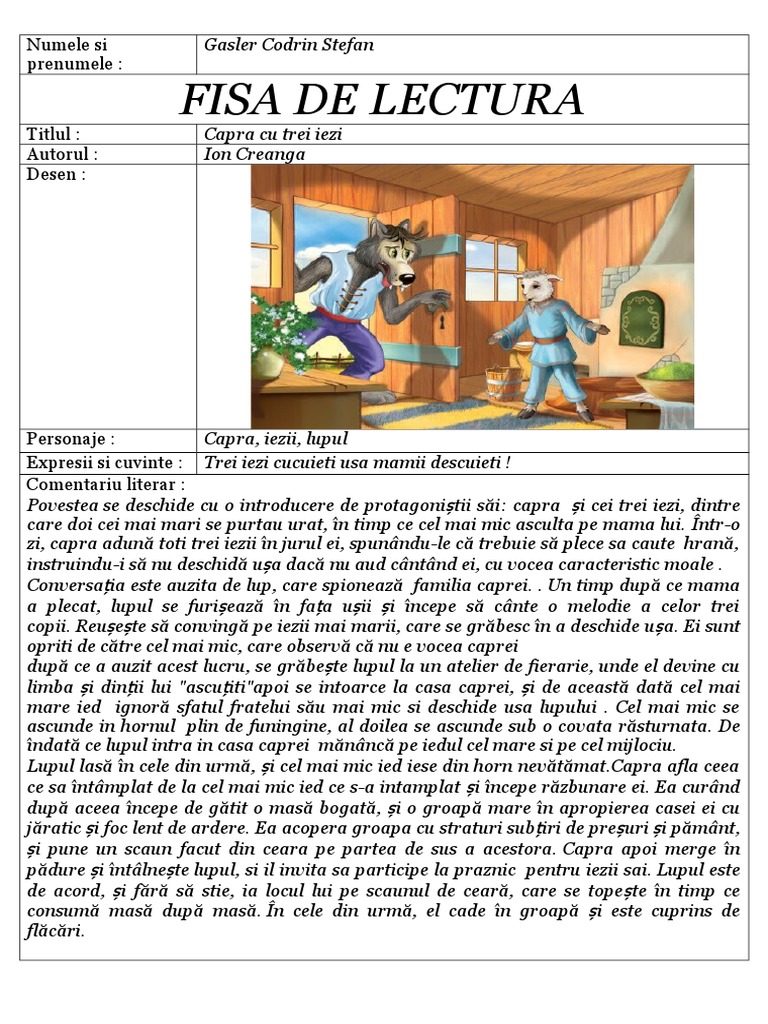 O Fișă De Lectură Tinerețe Fără Batranețe și Viață Fărăde Moarte Aleodor Impăratul Fata Săracului Brainly Ro