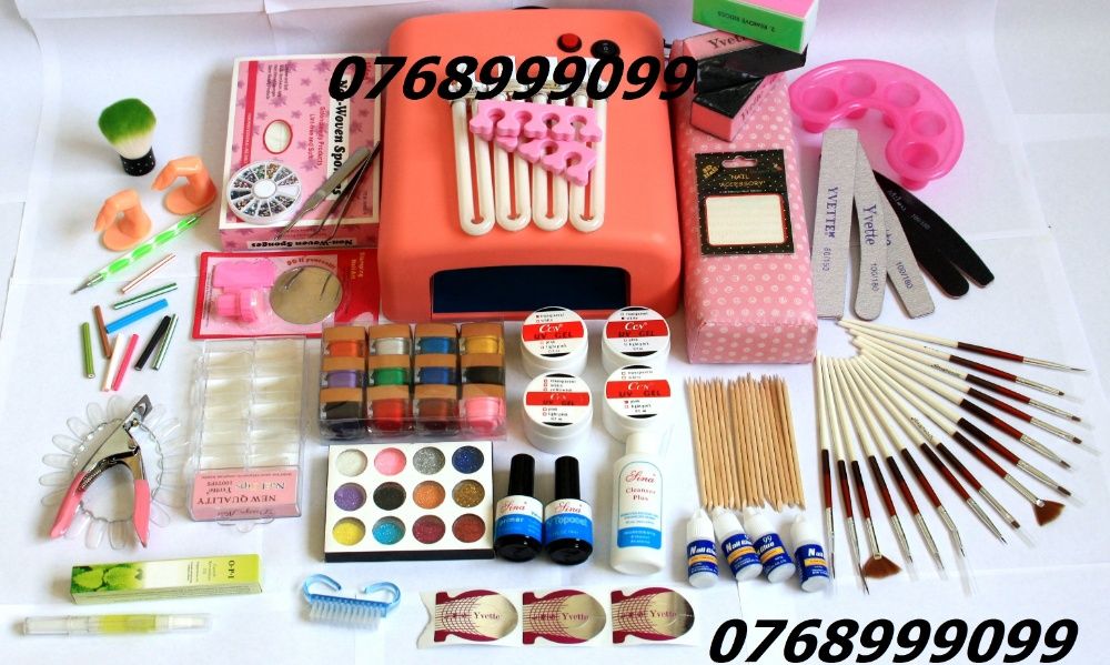Kit Profesional Unghii Gel Uv Geanta Mare Freza Lampa 36w Mega Oferta