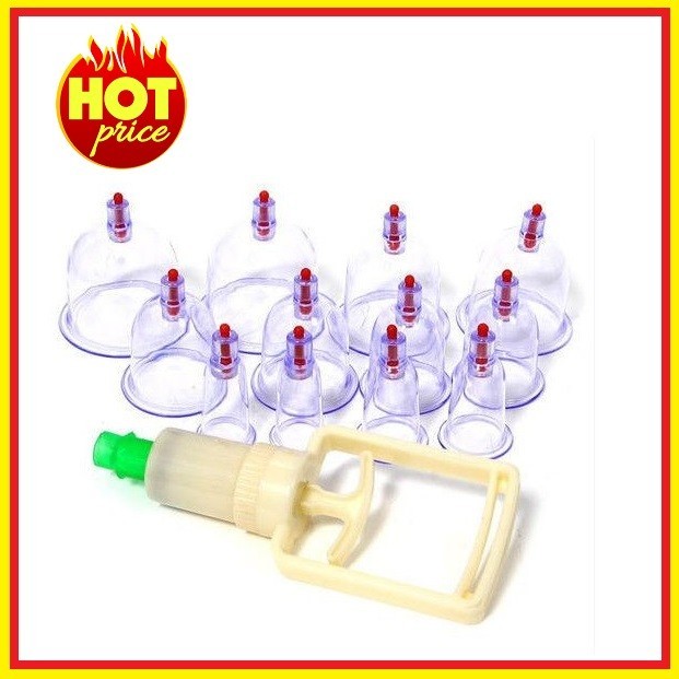 Set 12 Ventuze Medicinale Cu Vacuum Pentru Eliminarea Racelilor Si Durerilor